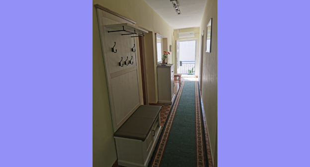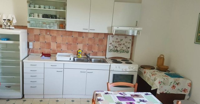 Apartman ima kupaonicu, zaseban WC, kuhinju koja je kompletno opremljena posuđem i priborom za jelo i kuhanje. U kuhinji se nalazi hladnjak s ledenicom, štednjak sa pećnicom, aparat za kavu, toster, te mikrovalna pećnica.