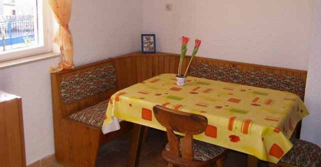 Udoban i lijepo uređen apartman za 2 osobe + mogućnost 1 dodatnog ležaja. Apartman se sastoji od sobe sa bračnim krevetom, kupaonicom, kuhinjom koja je kompletno opremljena, (hladnjak sa ledenicom, štednjak sa pećnicom, toster, mikrovalna pećnica, aparat za kavu).