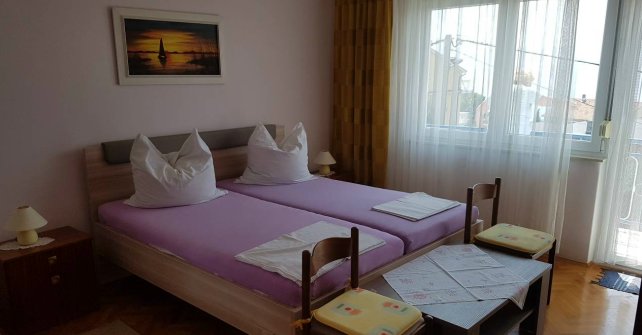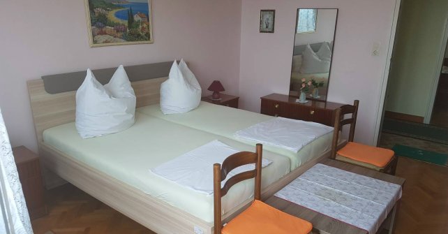 Die große möblierte Wohnung befindet sich am 2. Stock das Hauses von cca. 120 m2.Das Apartment besteht aus 4 separaten Schlafzimmern mit Doppelbetten mit schönem Meerblick. In eine grössere Zimmer können Sie ein Zustellbett stellen.